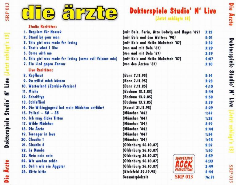 Neben Samplerbeiträgen enthält das Bootleg diverse Liveraritäten, wie die einzige Liveversion von Bitte, Bitte! Track 1-9 sind verschiedene Studioaufnahmen, die auf Samplern und Soundtracks veröffentlicht wurden. 8,9,10 sind vom 07.11.1995 aus Bonn; 11,12,13 sind von einem Konzert in Bochum am 13.02.1985; Track 14 ist eine Liveaufnahme aus Kassel vom 21.11.1993; 15-20 sind von einem Konzert aus dem Jahre 1984 in München; 21-25 sind aus Oldenburg vom 26.10.1987 und Track 26 ist vom ersten Konzert nach der Reunion vom 29.10.1993 in Bielefeld.