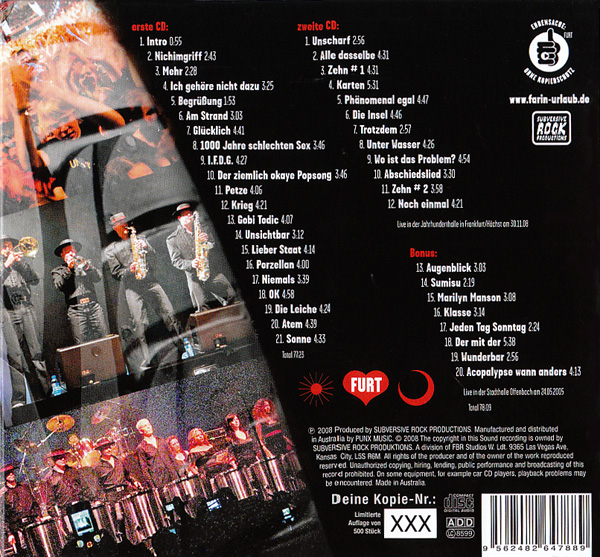 Hierbei handelt es sich um das erste Bootleg, welches einen Mitschnitt vom[nbsp]FARIN URLAUB RACING TEAM[nbsp]beinhaltet. Neben dem kompletten Mitschnitt aus Frankfurt befinden sich 8 'Bonustracks' aus Offenbach (2005).