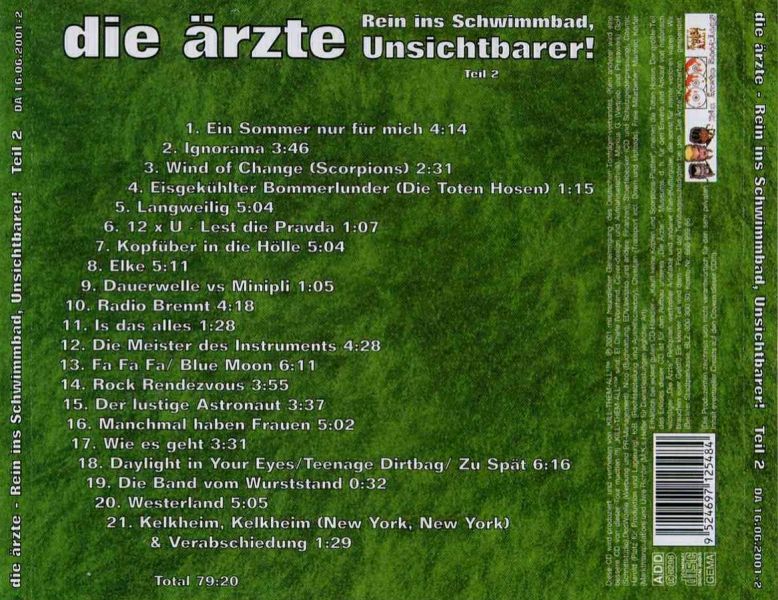 Zweiteiliges Livebootleg, dass den gesamten Open-Air Auftritt der Ärzte im Kelkheimer Schwimmbad enthält! Das Cover ist nur ein verfärbter Scan des RmdS,U! Fells.