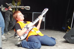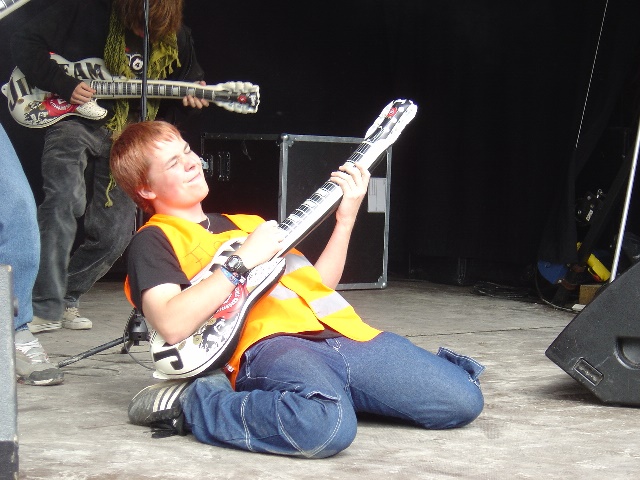 In der Zeit zwischen El*ke und Exilia haben wir uns dann zur Karaoke-Bühne, die von Jim-Beam präsentiert wurde, gemacht und Holdy, Tij und ich haben dann Rockschtar mäßig uns bewiesen und hardcore Luftgitarre gespielt. Performed wurde von uns The Offspring - The Kids aren't allright, abgefeiert von unseren Camp-Kollegen hatten wir einen riesen Spaß. Als Preis gabs jeweils ein Shirt und eine Luftgitarre, wobei wir da noch Umtauschen mussten (...mir passte das Girly-S-Shirt nicht ganz so gut)...