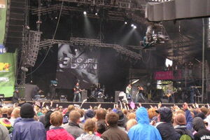 Wir fuhren Nachmittags mal mit dem Bus runter um ein Bändchen zu holen. Wir schauten uns dann das Gelände an und die ganzen Bühnen. Danach fuhren wir wieder hoch. Irgendwann fuhr ich wieder mit dem Bus und zwei Kumpels runter zu den Beatsteaks. Ja ein ganz schönes in-und-her war das. Um 20 Uhr gings los. Wir standen ganz unten am Hang. Die Jungs gaben ihr bestes. Doch in der Halle rocken sie bessa. :P Naja, trotzdem geil! Die Setlist weis ich garnet mehr so, klar. Aber "So lonely" hat derbst gerockt fand ich. :) Wir liefen dannach noch ein bisschen über das Gelände und setzten uns oben an den Hang. So hatten wir gute Sicht auf beide Bühnen.