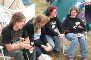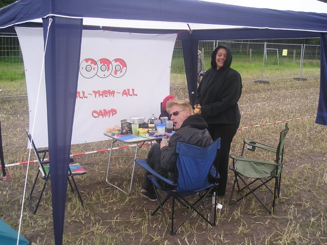 Es war viel Bier. Denn am nächsten Morgen ging das Frühstück erst gegen 16 Uhr runter. Meine 8 Kumpels (alles "Forenlose"), sind derweil ins Freibad gefahren. Der Rest saß unter den Pavillions in der Mitte des Camps. Es war ziemlich warm und zur Erfrischung besprühten wir uns mit einem Wasserzerstäuber. :D Hört sich ziemlich doof an... .:D