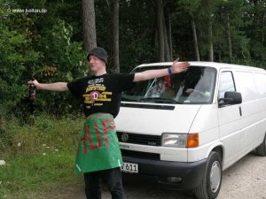 Zum Abend hin kam das große Unwetter. Ich verbrachte die Zeit im Auto mit Musik. War doch interessant wie manche ihr Hab & Gut (in diesem Falle nur die Zelte und Pavilions) festhielten. Als es dann noch heftiger wurd, lief ich auch raus. Ich haute bei Regen noch einige Heringe rein. Das wars. Mehr konnte man nicht tun. Deshalb verkroch ich mich mit 2 Kumpels wieder ins Auto und wir aßen erstmal. Dann kams Frustsaufen. Man sah nur raus und dachte sich eigentlich nur....pffft..na und ist jetzt auch scheiß egal.