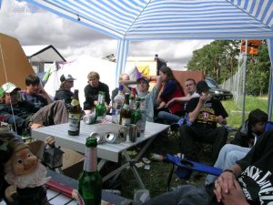 Den Rest des Tages verbrachte man eigentlich nur mit Neuankömmlinge zu begrüßen, Revier verteidigen, und Unterhaltungen bei Bier.