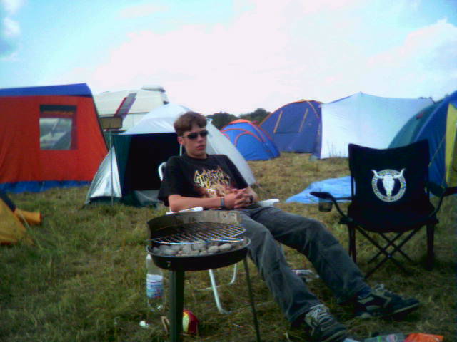 Nachdem wir uns was zum Frühstück gegrillt haben, fuhren wir am nächsten Morgen noch mal einkaufen (wir = Kirsten, der Axelerator, das eine unserer Kinder, Säb und ichse). Kirsten kannte da ne ganz tolle Abkürzung zum Aldi, bei der ihr Auto (Merkt euch, ich steh irgendwo auf Parkplatz 4) auch nur ganz selten auf dem Boden aufsetzte. Wir kauften erstmal für drei Tage Grillwürste, Baguettes und Bier ein (sonst aber auch nix weiter) und ab zum Basislager. Grill anschmeißen! Am Abend rockten uns Kettcar, Wir sind Helden, Rammstein. Oasis spielten auch. Leider ging meine Brille dabei verschipp! Dass ich dadurch auf der Rückfahrt trinken konnte, war ein eher schwacher Trost. Jetzt bin ich erst mal für ein paar Tage ohne Klarblick, da meine letzte Brille das Taubertal 04 nicht überlebt hat... Aus Schaden wird man...egal!
