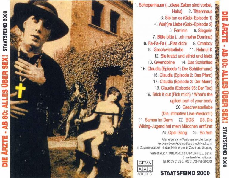 "1999er Neuauflage des 1998 erschienen "Ab 80 - Alles ueber Sex" Bootlegs. Bei dieser Version fallen einige Lieder der 98er Auflage weg und werden durch andere ersetzt. Außerdem wurden das Innencover und die Coverrückseite der CD verändert. Von dieser 2. Version gibt es mehrere Auflagen, zu unterscheiden an den Kreuzfarben der CD-Aufdrucke." (Quelle)