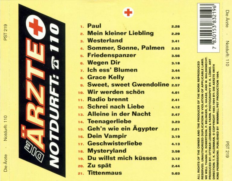 * offiziell erschienener Song | ** indizierter Song | *** Coverversion | **** andere Band