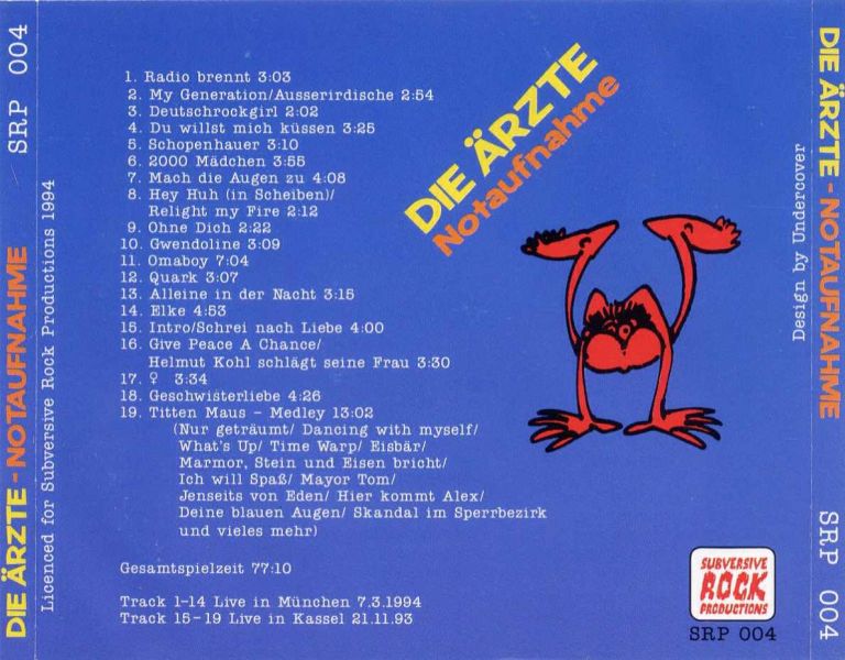 Die Lieder 15-19 stammen vom Konzert am 21.11.1993 in Kassel im Spot.