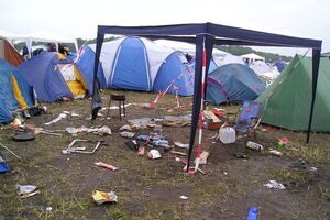 Zum Abend hin kam das große Unwetter. Ich verbrachte die Zeit im Auto mit Musik. War doch interessant wie manche ihr Hab & Gut (in diesem Falle nur die Zelte und Pavilions) festhielten. Als es dann noch heftiger wurd, lief ich auch raus. Ich haute bei Regen noch einige Heringe rein. Das wars. Mehr konnte man nicht tun. Deshalb verkroch ich mich mit 2 Kumpels wieder ins Auto und wir aßen erstmal. Dann kams Frustsaufen. Man sah nur raus und dachte sich eigentlich nur....pffft..na und ist jetzt auch scheiß egal.
