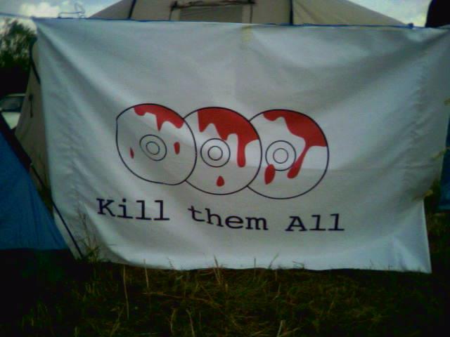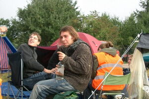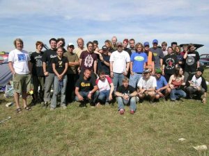 So fuhren wir dann durch die Wallachei und plötzlich sahen wir am Horizont Zelte. Wow! Wie kamen wir nun dort hin? Es ging über Feldwege. Und dann standen wir vor dem Zaun. Wahnsinn! Ich rief keitan an und er sagte mir, dass er noch auf der Autobahn sei, doch der bademeister (nicht 666!), sei schon da. Irgendwann fanden wir sie dann auch. Puh! Nun gings an Zelte aufbauen und man gönnte sich nach der schwierigen Fahrt das erste Pilsken. :)