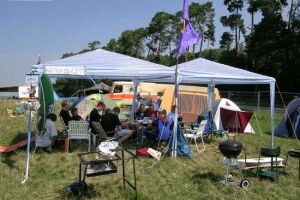 Was folgte, war eine herrliche Gaudi mit stundenlangem Gesang, interessanten Kontakten zur Polizei, gitarreklimpernden Passanten und den Ruhrpott-Nachbarn. Der Spaß war einfach unbeschreiblich und für die umliegenden Zelte beinahe unerträglich. Irgendwann kroch Flo der Sitzpisser (Achtung, Insider) dann ins Sündenzelt, FloZwo grillte sich noch ne lecker Banane und wir waren alle gerade am Einschlafen, als im grün-weißen Schmuddelzelt die Party losging! Aber das bleibt doch wohl größtenteils unter den Beteiligten, oder? Jedenfalls war es eine "Night to remember".