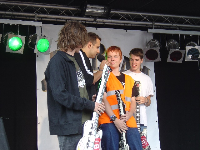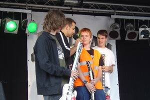 In der Zeit zwischen El*ke und Exilia haben wir uns dann zur Karaoke-Bühne, die von Jim-Beam präsentiert wurde, gemacht und Holdy, Tij und ich haben dann Rockschtar mäßig uns bewiesen und hardcore Luftgitarre gespielt. Performed wurde von uns The Offspring - The Kids aren't allright, abgefeiert von unseren Camp-Kollegen hatten wir einen riesen Spaß. Als Preis gabs jeweils ein Shirt und eine Luftgitarre, wobei wir da noch Umtauschen mussten (...mir passte das Girly-S-Shirt nicht ganz so gut)...