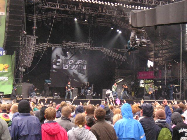 Viele gingen an dem Tag schon relativ früh aufs Gelände, ich hingegen verpasste La Vela Puerca, da ich beim Bierholen im Zelt einschlief. Rude Flo, im folgenden nur FloZwo genannt, traf nun endlich auch ein und machte sich erstmal Gedanken, wo er denn schlafen könne. Säbs Bondage-Zelt erschien eindeutig zu klein, im Blau-Gelben PartyZelt wollt man ja auch nicht stören, und das Grün-Weiße SchmuddelZelt, die Verkörperung Sodom und Gomorrhas fiel ja schon mal ganz aus. Was FloZwo nicht wusste: Schlafen wird er heut eh nicht mehr! Zu Three Doors Down liefen dann auch die letzten runter, nur die Kinder blieben noch ein wenig oben. Ich schaffte es zu den Queens auch hinter den Wellenbrecher und schaute sie mir entspannt an, schon voller Vorfreude auf DÄ.
