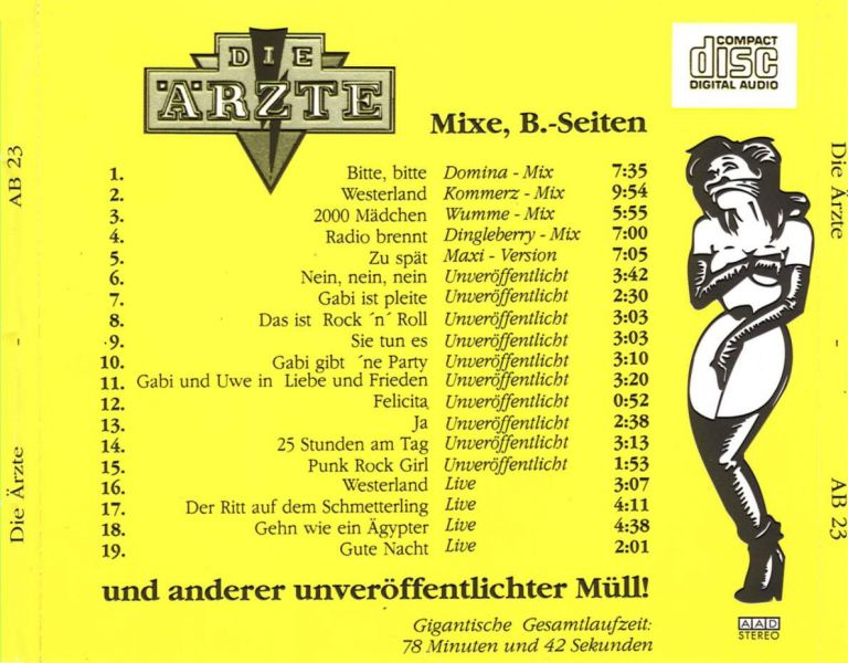 Das Bootleg enthält B-Seiten und sämtliche "Gabi und Uwe"-Lieder, die sich auf dem Sampler "Moskito Songs I" befinden; diese CD enthält entgegen den Informationen des Covers keine unveröffentlichten Songs und auch das Lied "Gute Nacht - live" fehlt.