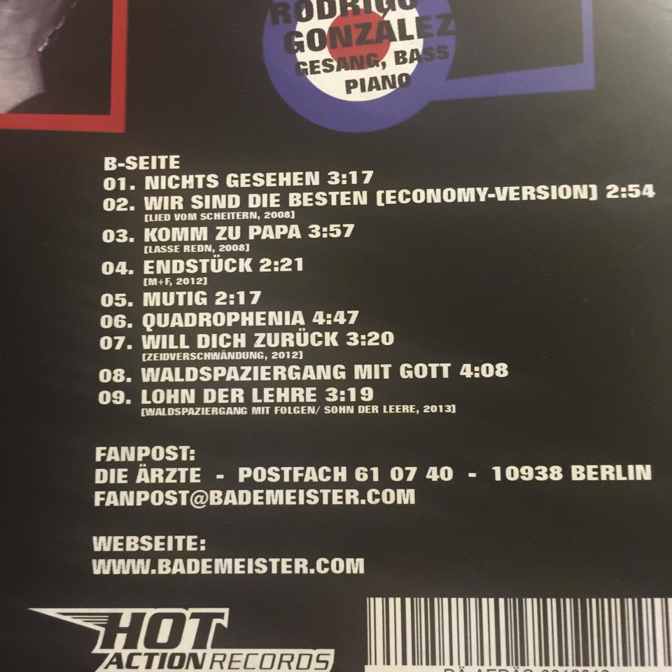 Neues Bootleg (ähnlich wie "Farin Urlaub: Am Ende der A-Seite") [nbsp]mit[nbsp]einer Auswahl an B-Seiten (und sonstigen Veröffentlichungen) von 1995 bis 2013. Herstellungsdatum muss mindestens 2013 sein. Bootleg erschien auf Vinyl.