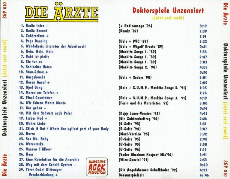 Drittes Doktorspiele-Bootleg, enthält zum Teil unveröffentlichte Tracks und Ausschnitte einer Moderation der Ärzte der EinsLive-Radiosendung "Soundgarden" vom 23.05.1996. Track 27 ist von Wizo und 29 von den angefahrenen Schulkindern