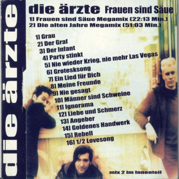 - Frauen sind Säue Megamix (Grau / Der Graf / Der Infant / Party stinkt / Nie wieder Krieg, nie mehr Las Vegas / Grotesksong / Ein Lied für Dich / Meine Freunde / Nie gesagt / Männer sind Schweine / Ignorama / Liebe und Schmerz / Angeber / Goldenes Handwerk / Rebell / 1/2 Lovesong)